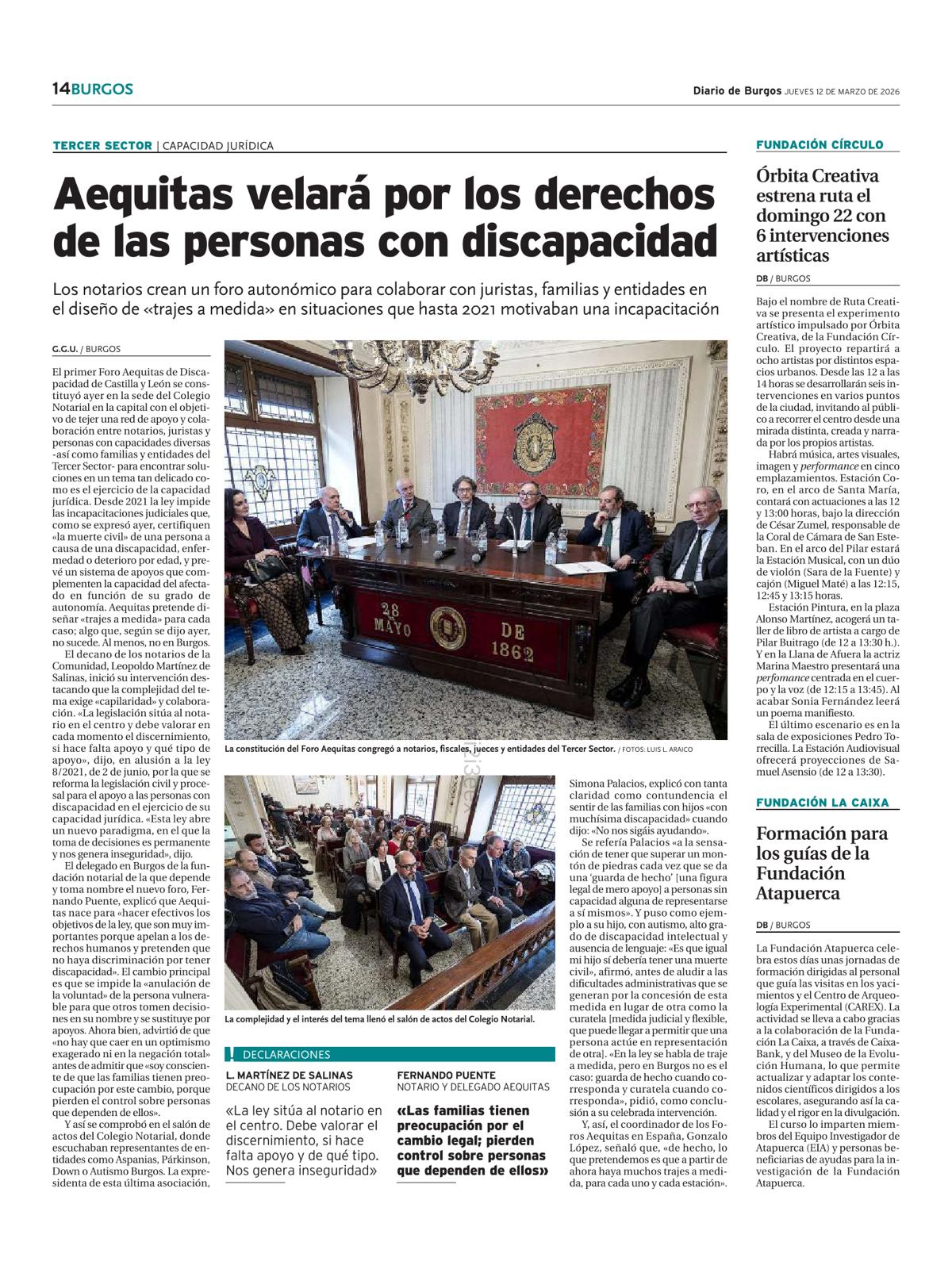 El salón de actos de la sede burgalesa del Colegio Notarial de Castilla y León acogió el miércoles la nutrida representación de instituciones y asociaciones relacionadas con la discapacidad que acudió a la constitución del Foro Aequitas de la Comunidad Autónoma, que se suma al ya existente en otras siete autonomías